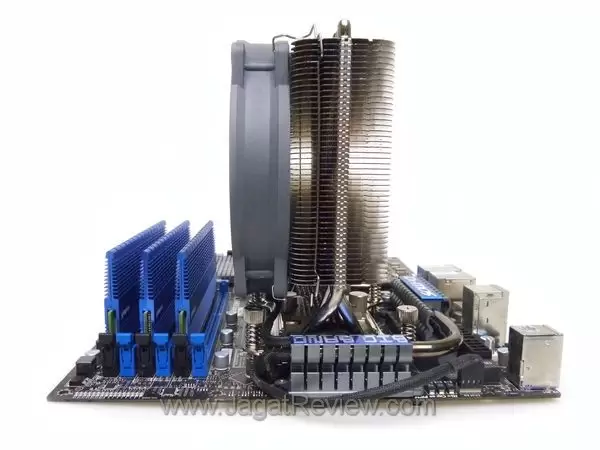 Sewaktu menggunakan heatsink yang memiliki desain ramping dan tinggi ini, Anda akan menemukan daerah sekelilingnya terasa sangat luas. Jarak yang tersisa antara fan dengan RAM pun cukup jauh. Selain itu, Anda masih dapat menambahkan satu buah fan serupa pada bagian belakang heatsink tanpa harus memasangnya dengan susah payah. Namun Anda perlu memperhatikan lebar maksimal casing PC sebelum memasang heatsink ini karena tingginya yang mencapai 160 mm, 10 mm lebih rendah dibandingkan Thermalright Archon.