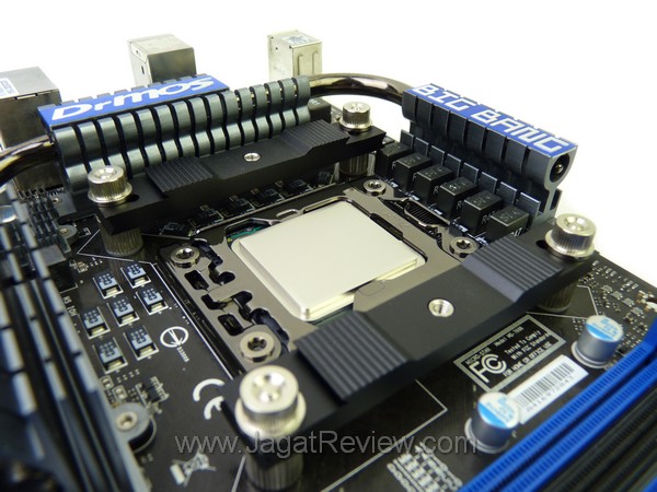 Area sekeliling heatsink tampak lega seperti pada gambar diatas. Hanya saja untuk pengguna RAM yang memiliki heatspreader cukup tinggi mungkin akan sedikit terganggu dengan karet silicon yang letaknya agak sulit diubah ketika RAM sudah terpasang. Jadi pastikan Anda mengukur terlebih dahulu sebelum RAM “tinggi” tersebut terpasang.